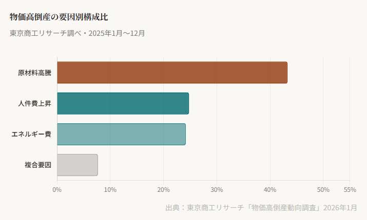 帝国データバンクは「2026年の倒産トレンドは、物価高から人手不足・人的要因へ移行していく」と分析しています。しかし実態は、どちらか一方ではなく、同時に来る。それが「複合倒産」の時代の本質です。